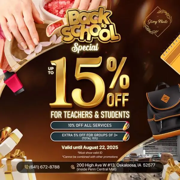Our team prioritizes your safety with strict cleaning routines, autoclaved tools, and single-use supplies that ensure every service is as clean as it is beautiful at Glory Nails, Oskaloosa, IA 52577.